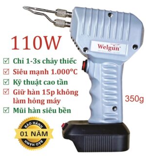 Combo mỏ hàn xung Welgun 110W, WS-1110 dùng Pin, nặng 350g – Liền chân Dewalt